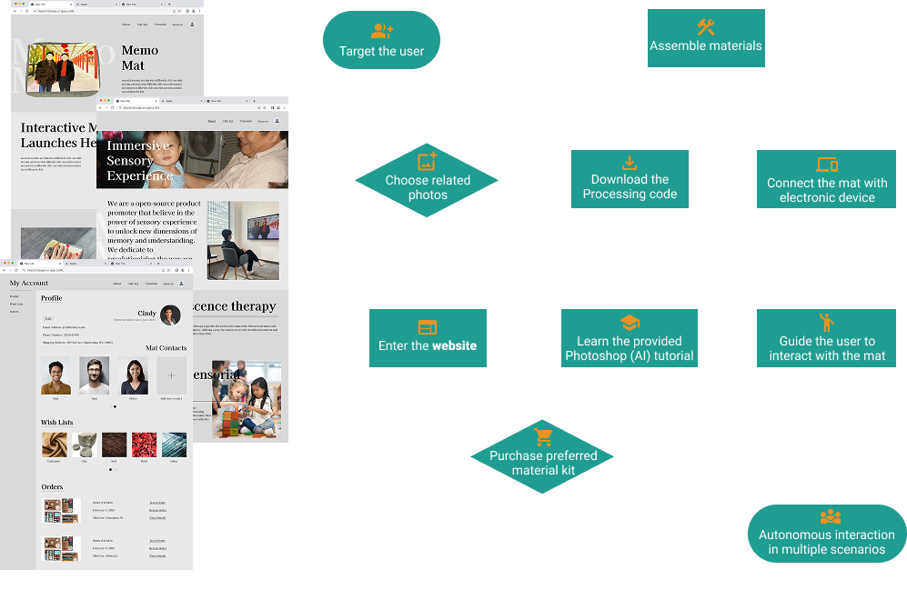 I designed an open-source system to scale the Memory Mat from concept to market. Through a guided web platform, users can upload photos, customize material kits, and download code and tutorials to build their own mats.